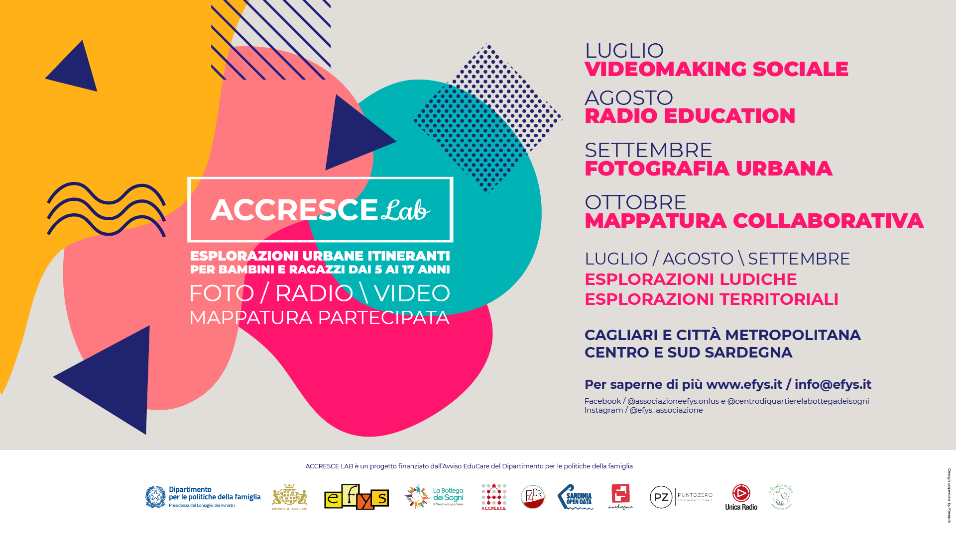 Il progetto è ideato da EFYS in collaborazione con i partner della rete ACCRESCE: Inmediazione, Sardinia Open Data, F4CR network, Puntozero APS, Unica Radio e Il Giardino di Clara.